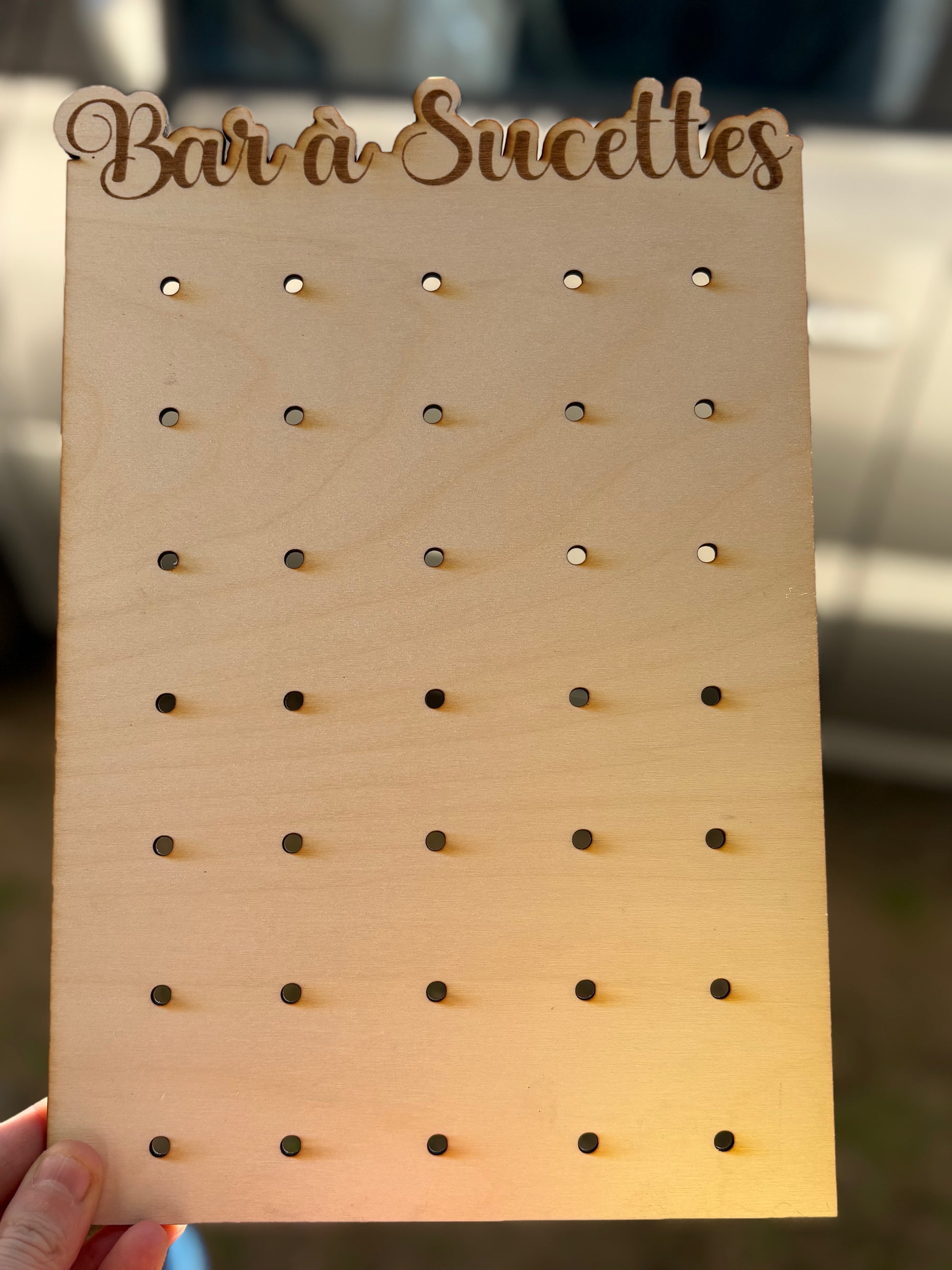 affiche en bois au format A4, conçue pour apporter une touche ludique et gourmande à votre **bar à sucettes** !