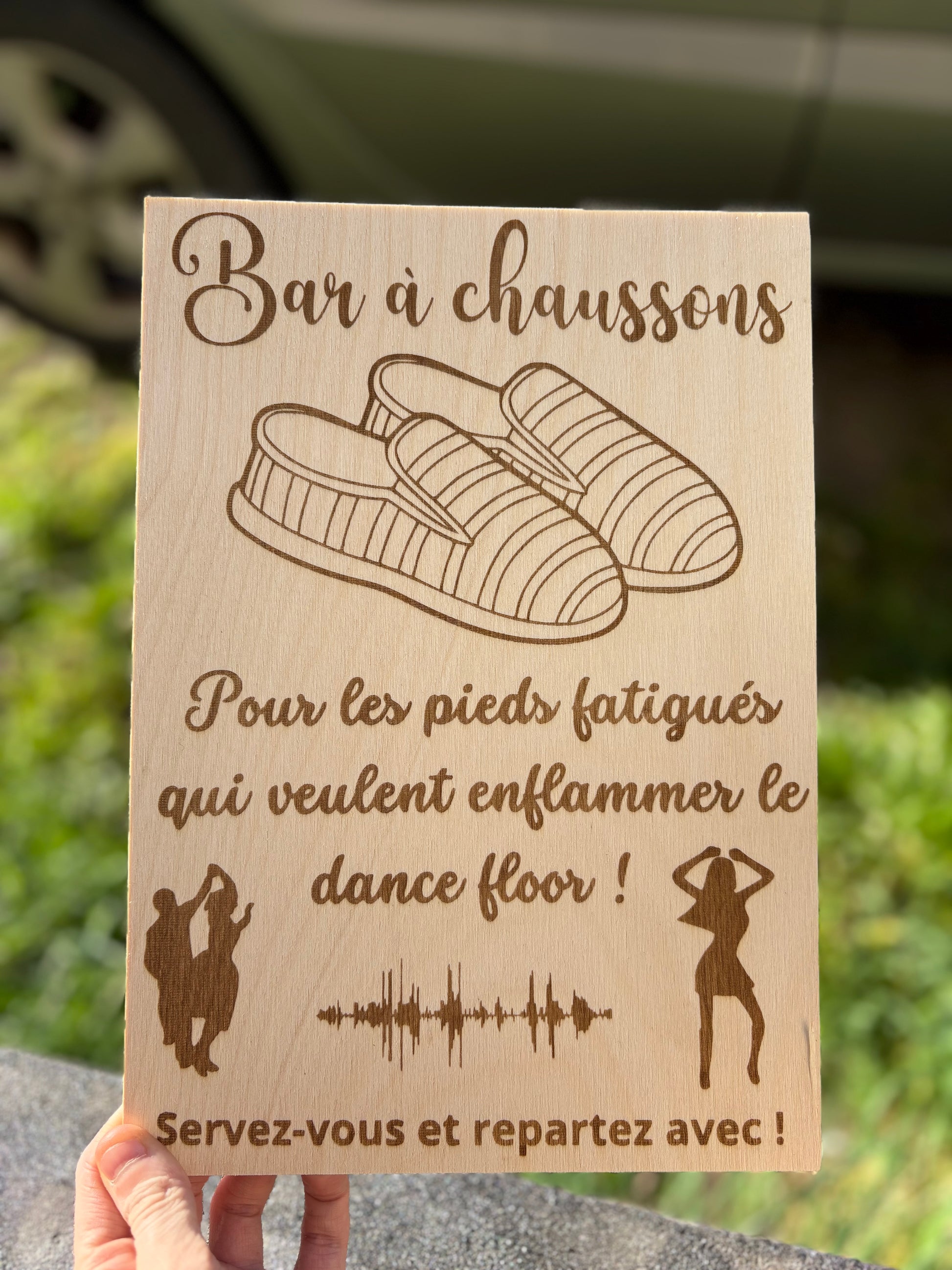 Affiche en bois au format A4, gravée avec finesse pour guider vos invités vers les chaussons mis à leur disposition. Son bois naturel, avec ses nuances chaleureuses et authentiques, apporte une touche élégante et accueillante à votre espace de confort.