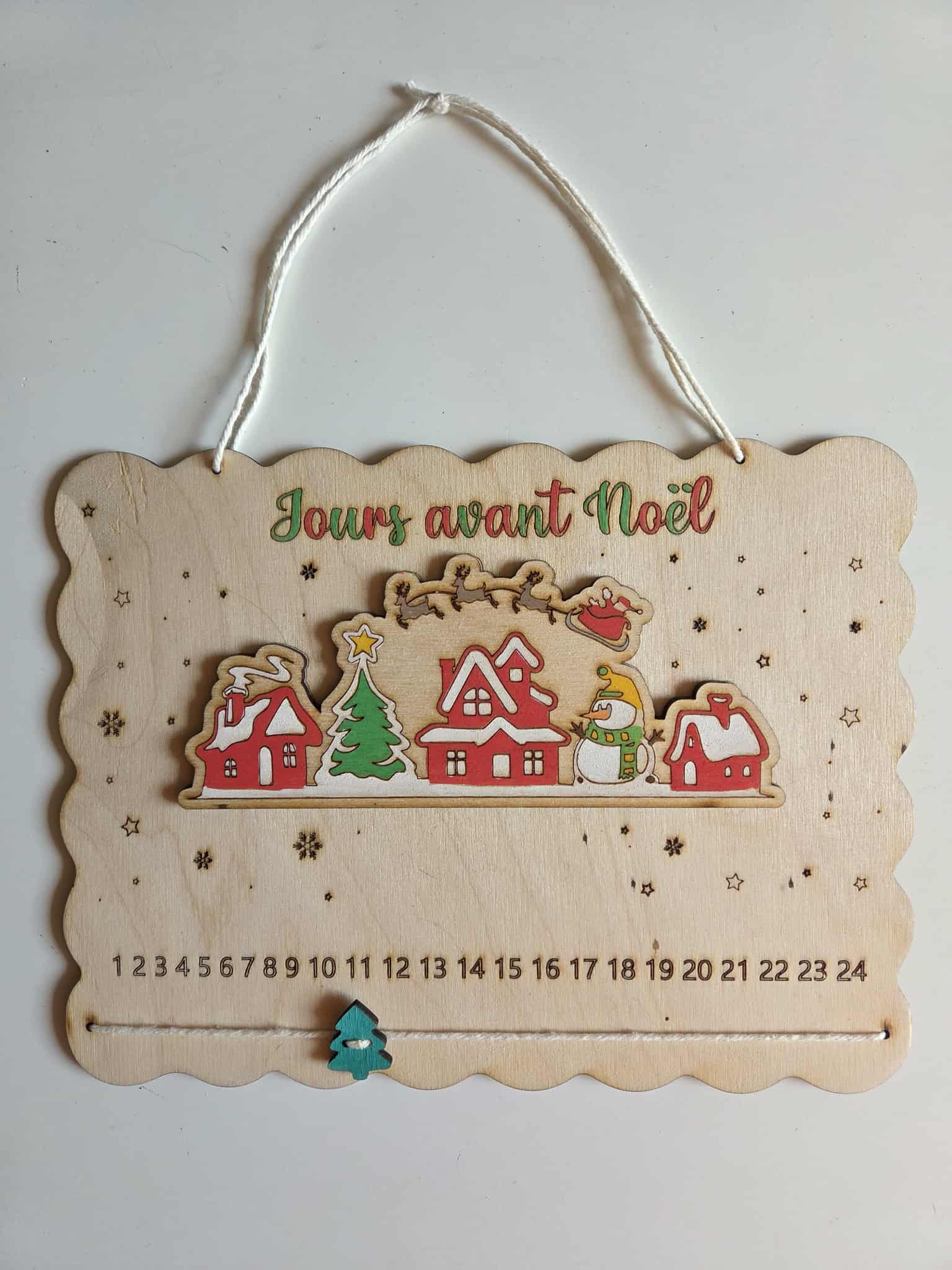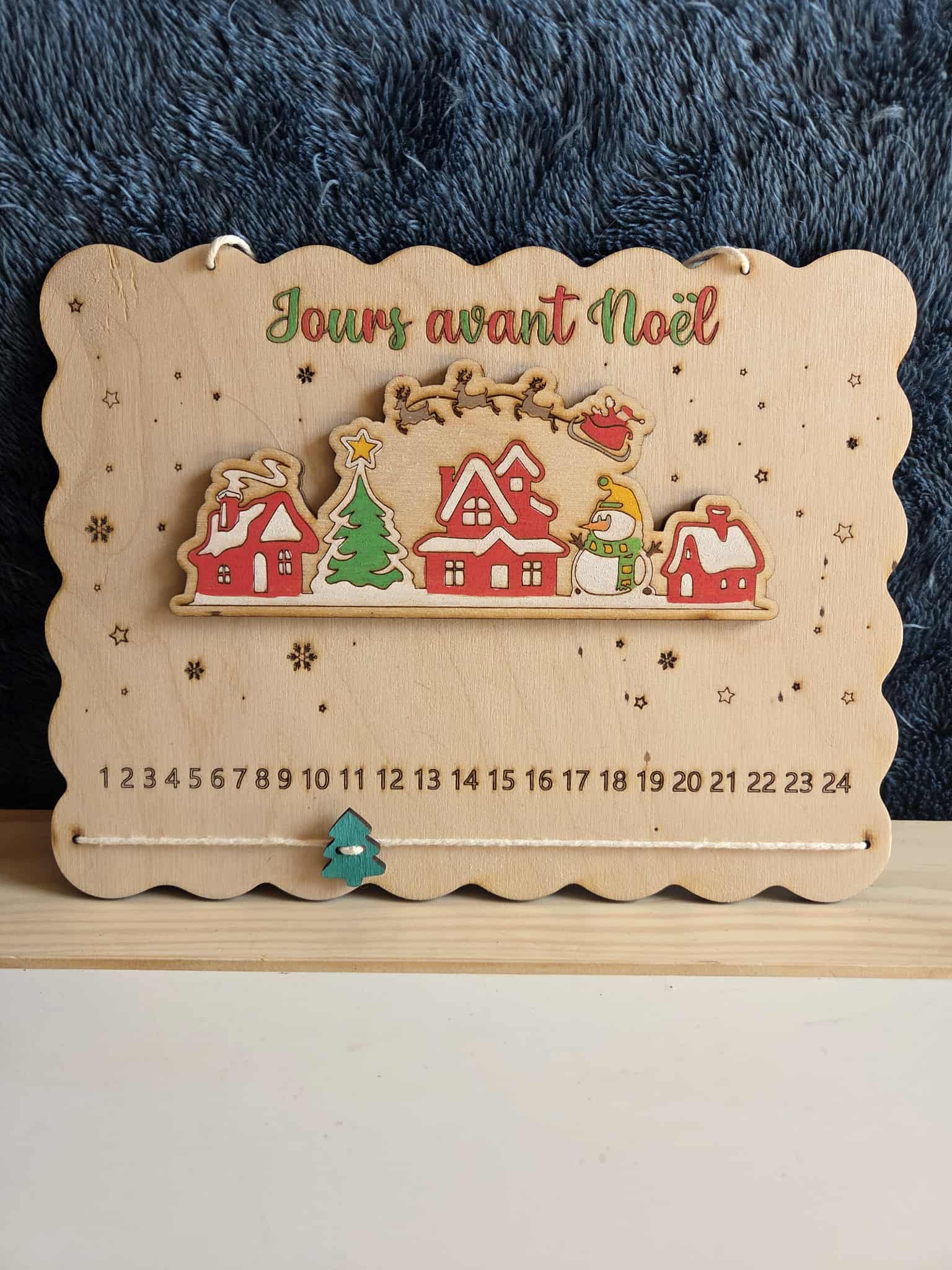 🎅 Compte à rebours de Noël – Sculpture artisanale en bois peint à la main