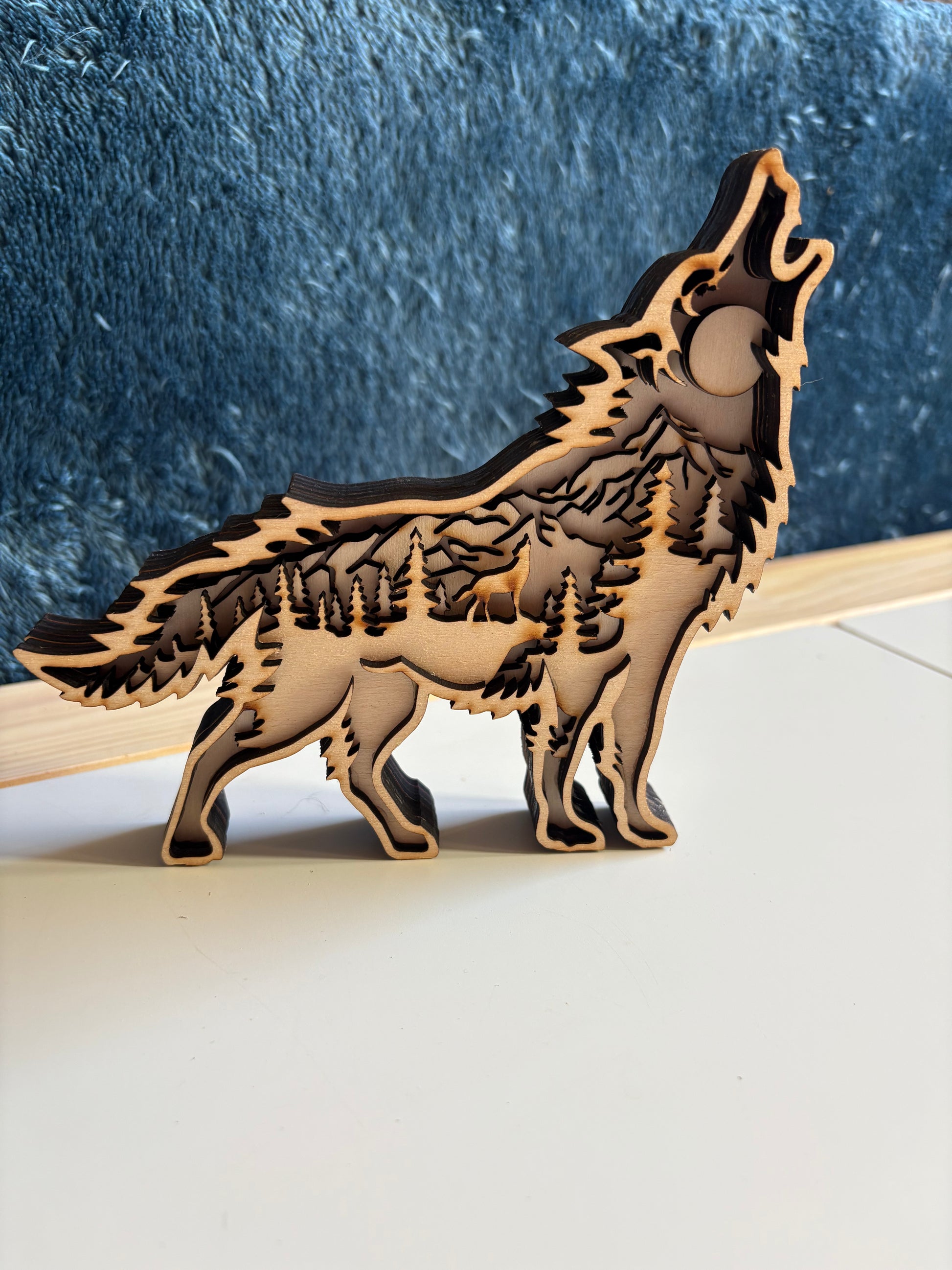 Majestueux et sauvage, ce loup en relief 3D incarne la puissance et la liberté de la nature. Fabriqué en bois, il allie finesse artisanale et caractère brut, pour une pièce décorative qui ne passe pas inaperçue.