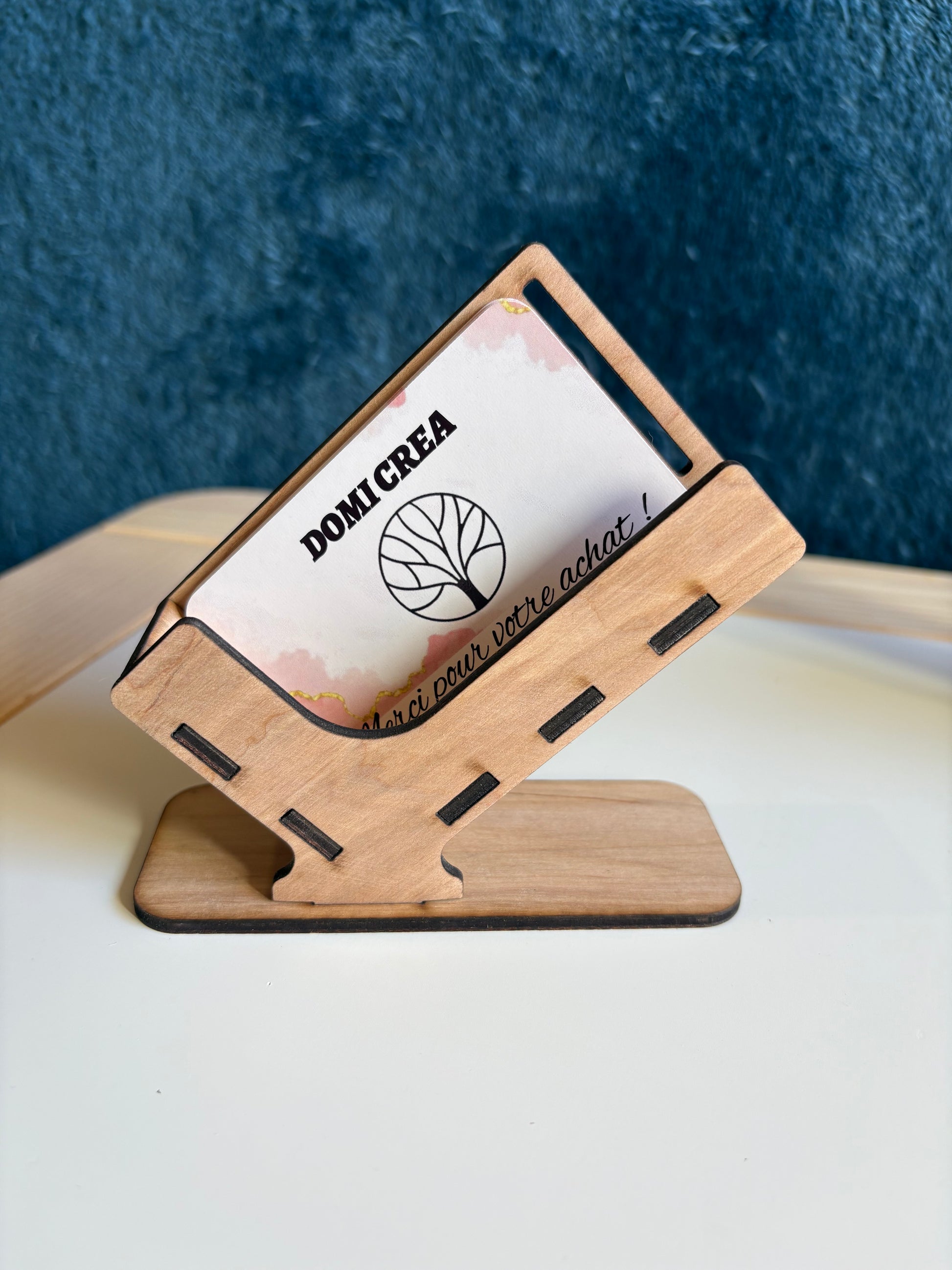 Exposez vos cartes de visite avec style grâce à ce porte-carte en bois, à la fois minimaliste et raffiné. Fabriqué artisanalement à partir de bois naturel, il apporte une touche chaleureuse et authentique à votre espace de travail.