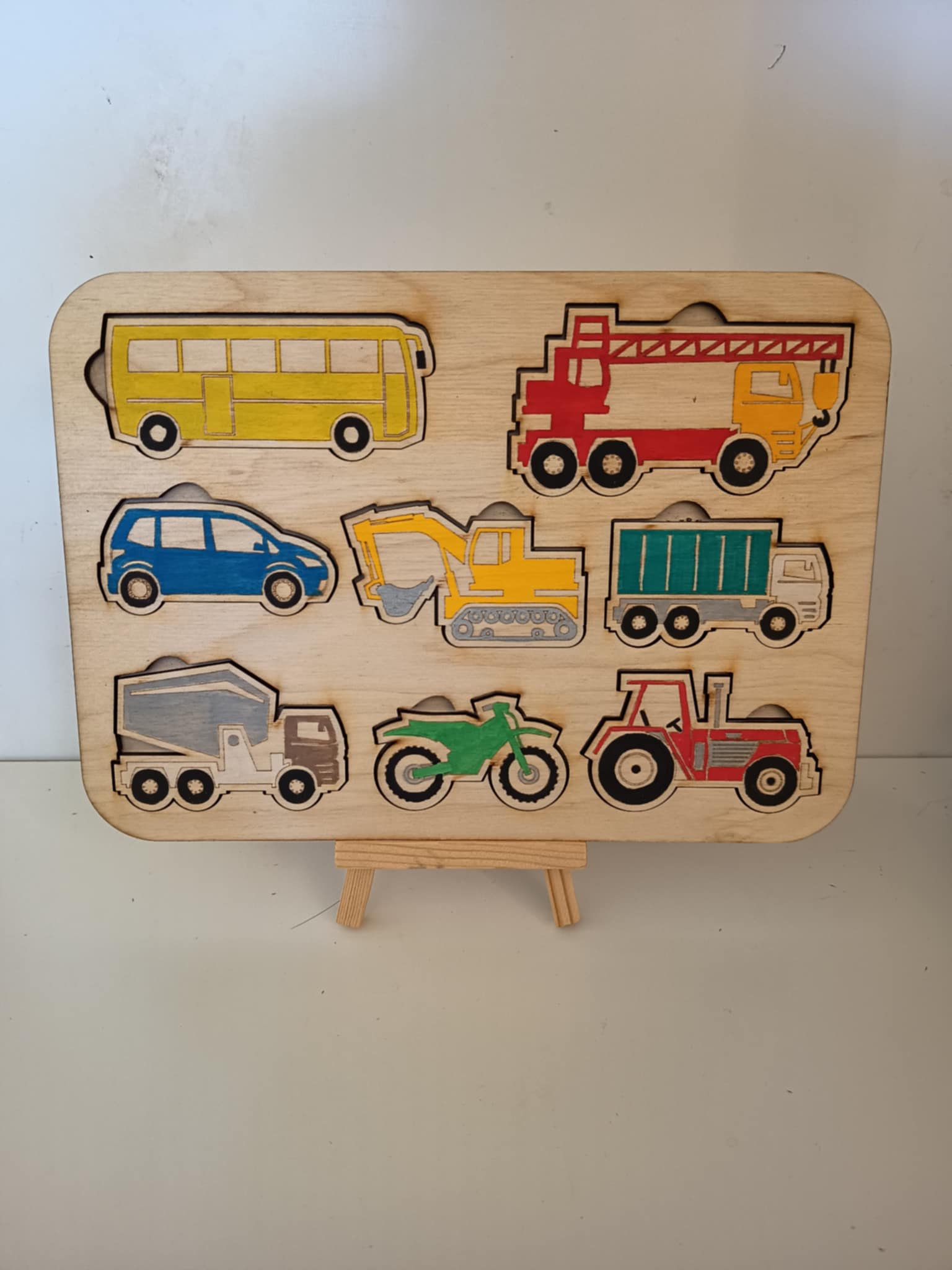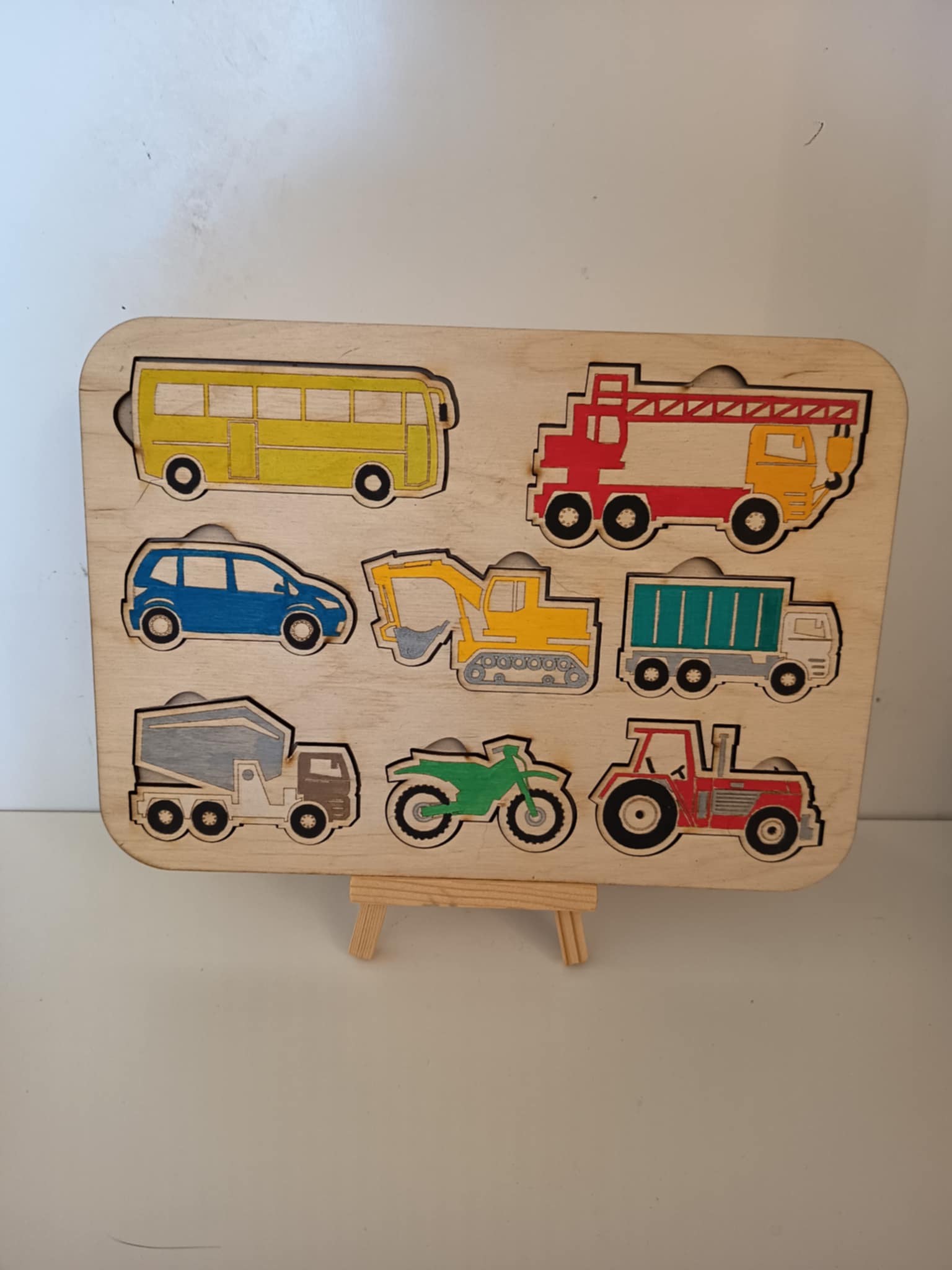 Puzzle en Bois – Thème Véhicules – 100% coloriée à la main