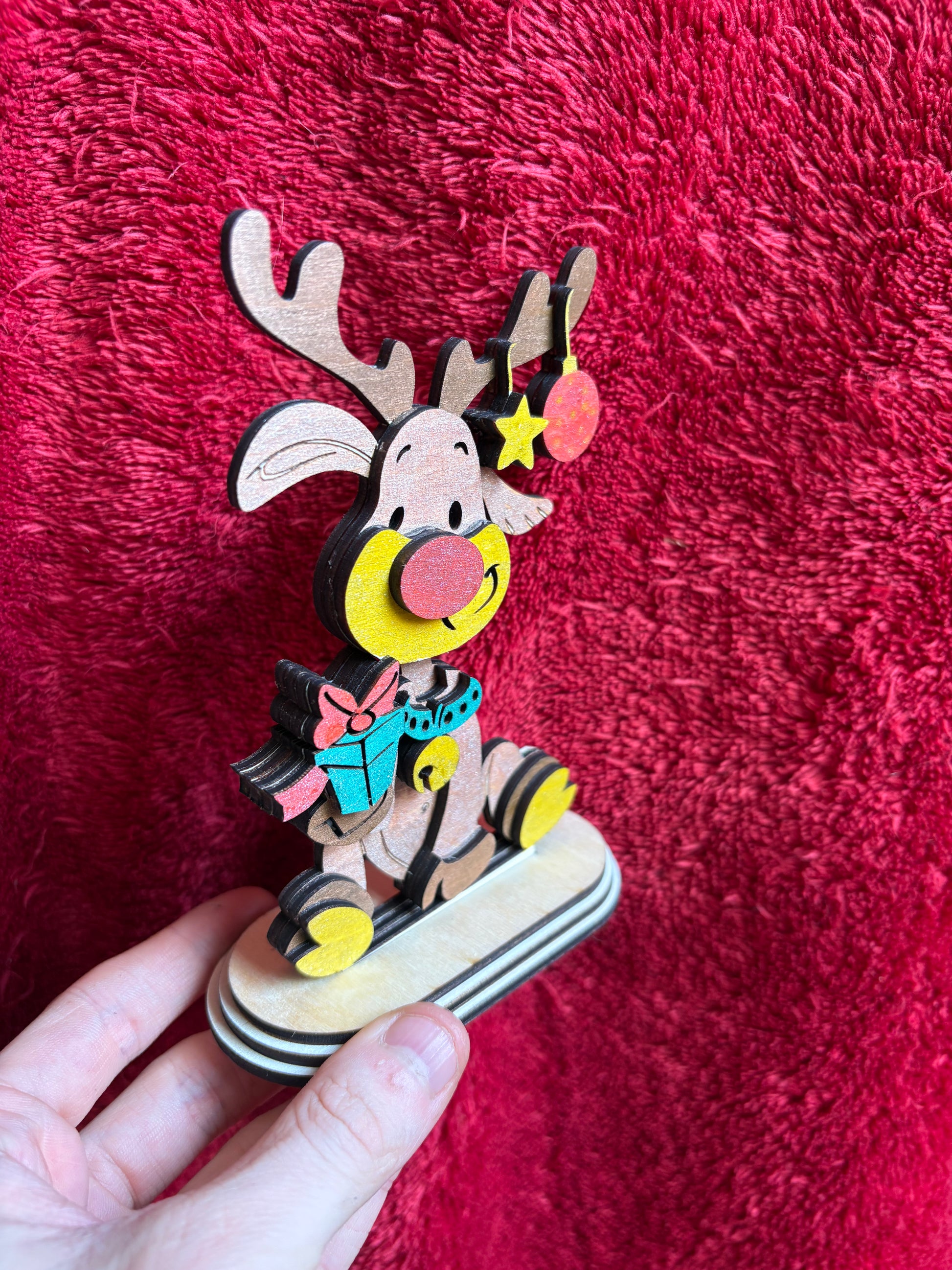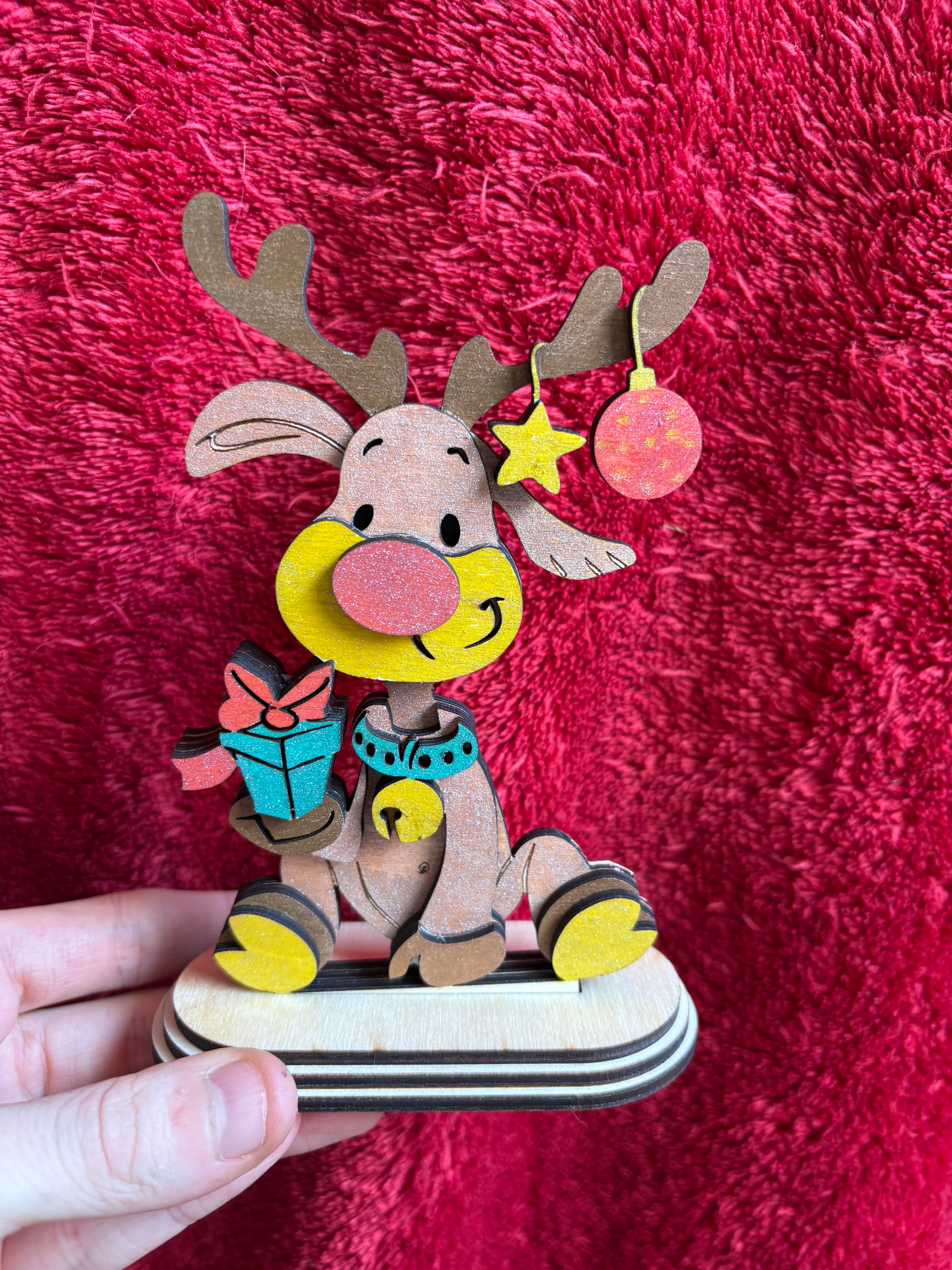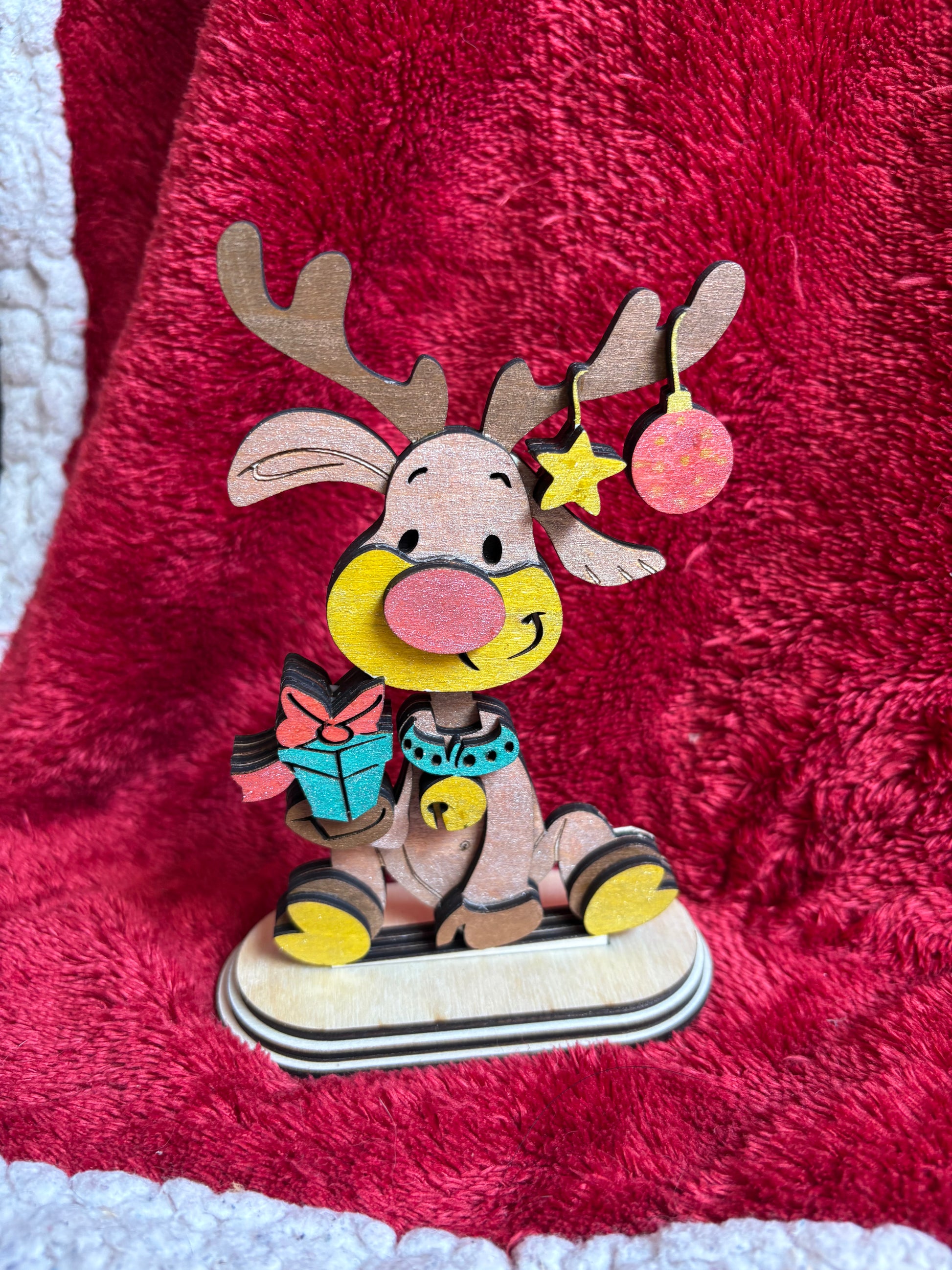 🦌 Renne de Noël en bois 3D – Colorié à la main